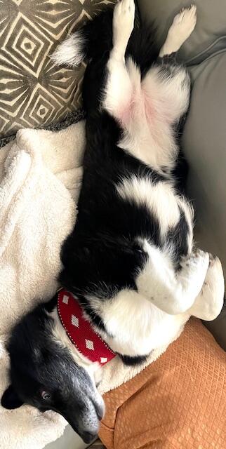 I moved to Aiken in 2021. I’m not sure where I was born, but in 2021 when I was two years old, I was transported from a kill shelter in North Carolina to the SPCA Eastern Shore Virginia. My mom was on the SPCA board and the moment she saw me she knew I would be hers. It was the one blue eye that caught her attention. The shelter staff wasn’t sure it was a good match. I was wild and a bit unmanageable and my mom liked quiet dogs. But it was a match.