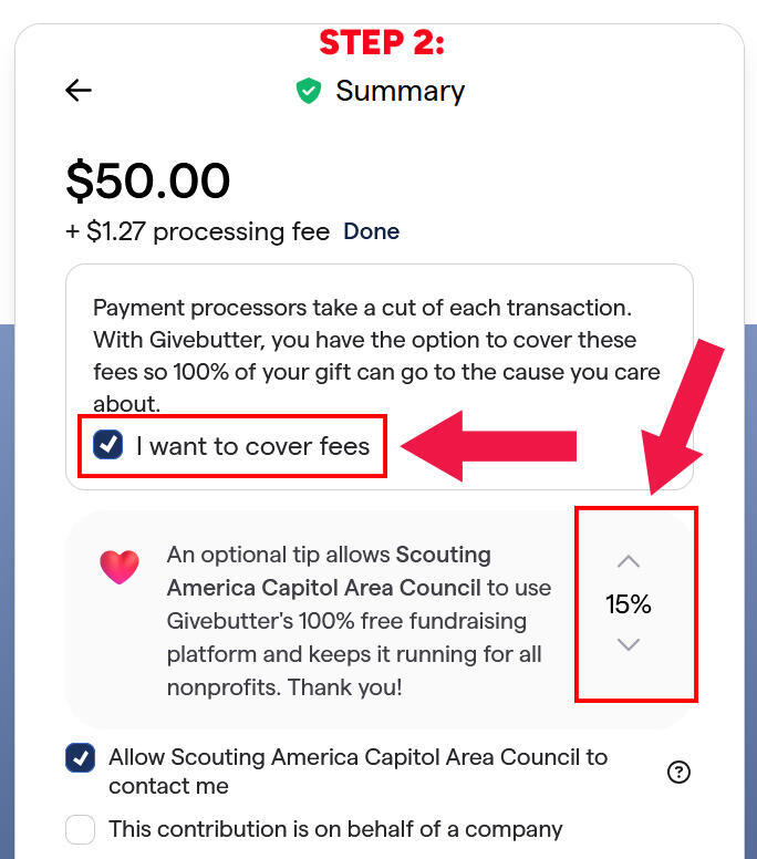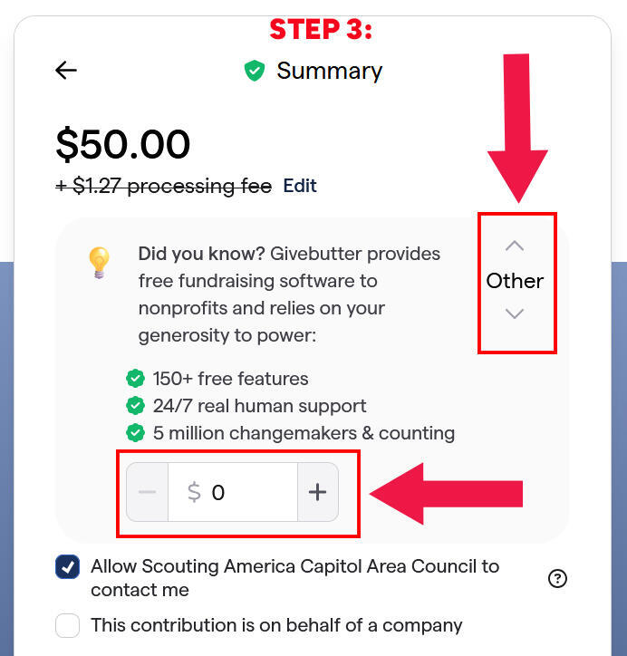After these steps, your donation total will be the amount you selected at the beginning.