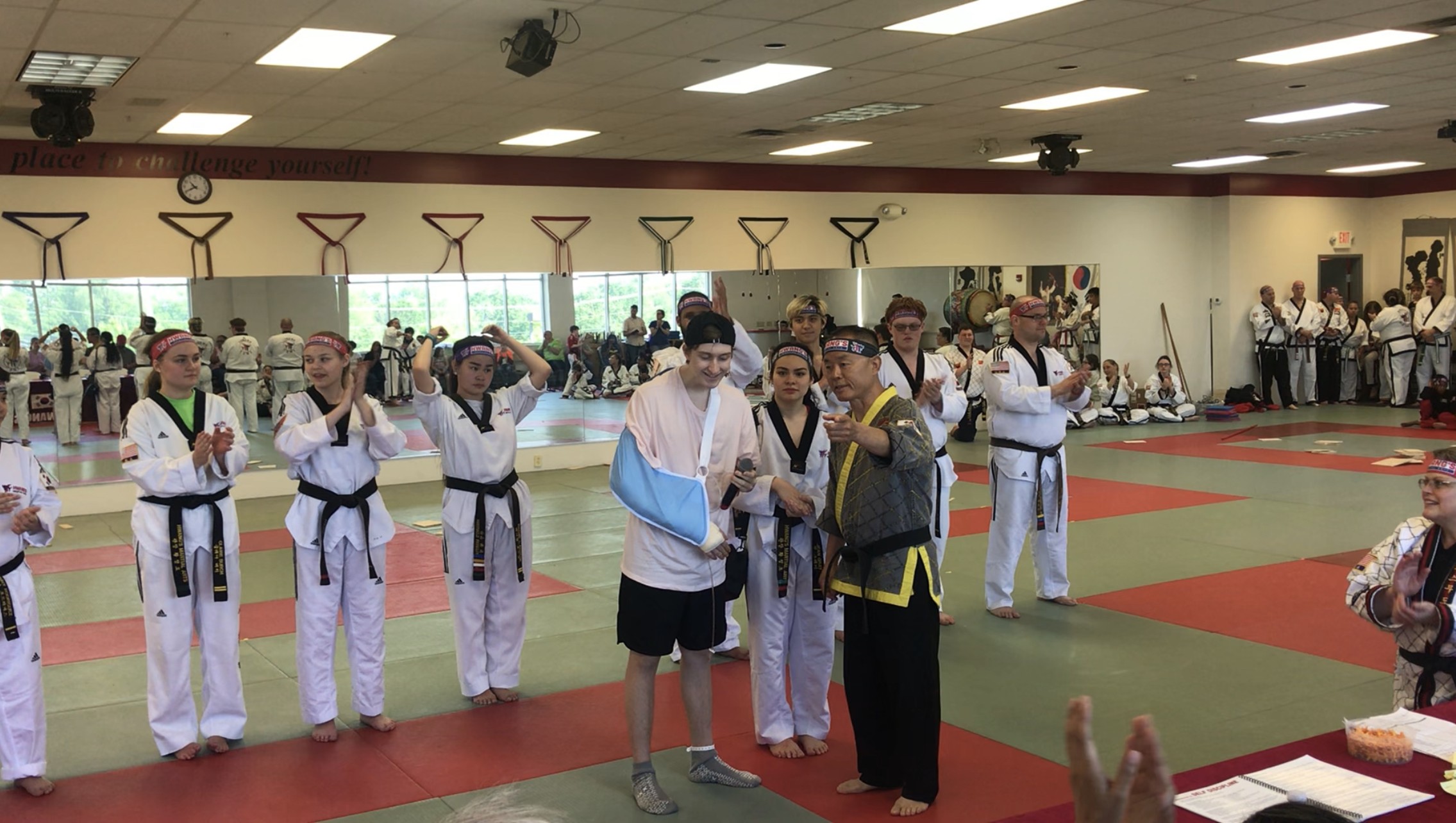 In May of 2019, I was in the hospital for over two weeks due to an injury to my arm. Grandmaster Hwang and my Hwang's Martial Arts family frequently visited and checked up on me to support my recovery. Once I was able to be released, I went to a belt test and was asked to show my support for the SWAT team to be able to compete in Miami, FL. These trips are only possible through the team's own fundraising and it shows the tenacity of Grandmaster's "Yes I can!" attitude, which is shown through our actions, words, and thoughts.