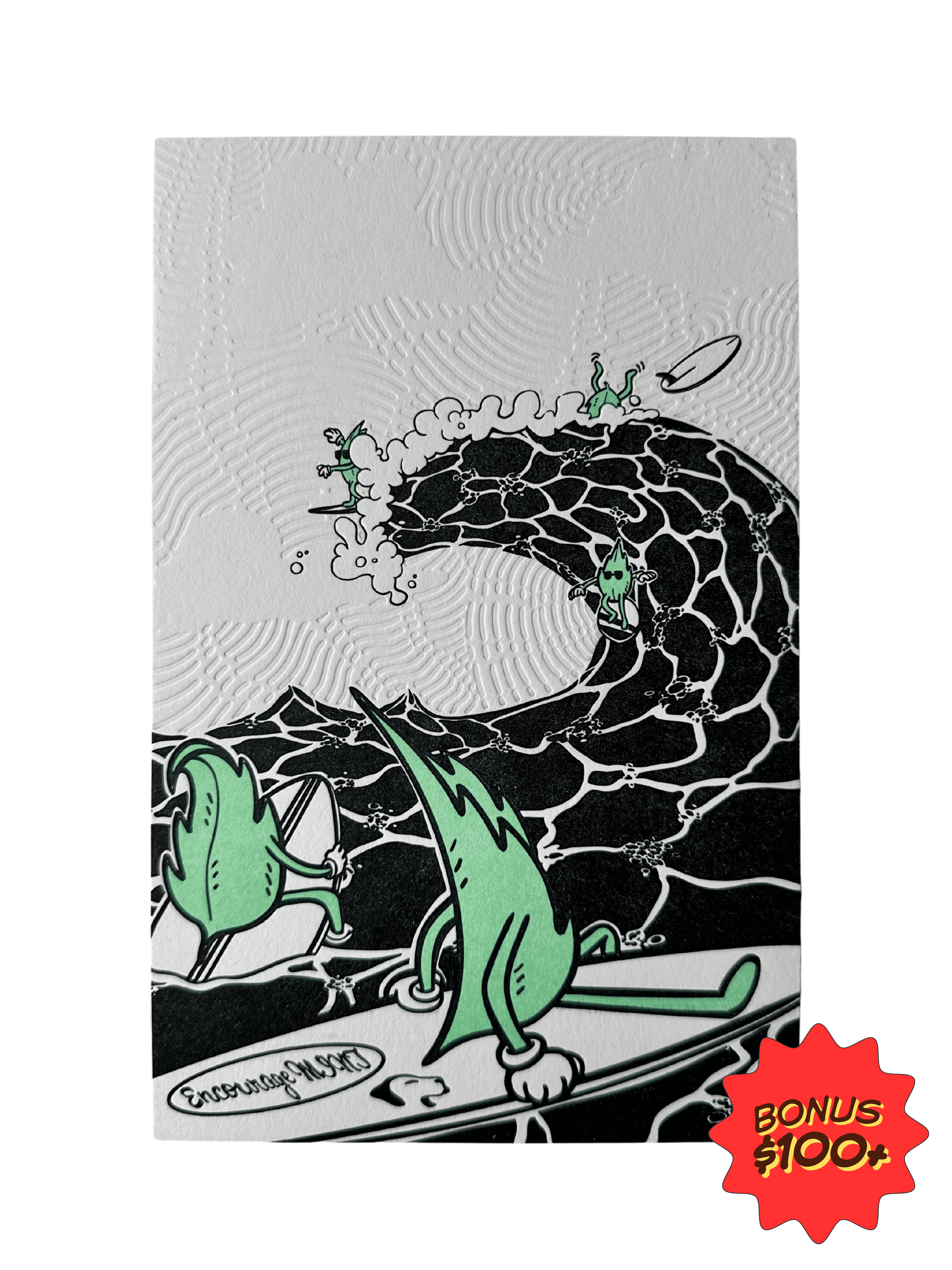 A bonus limited-edition print (5.5x8.5"), letterpressed by Aardvark Letterpress — a family-run vintage print shop in Ben & Olivia's LA neighborhood. Design by Olivia's friends/colleagues, Kaci (@konekokaci) and Damian (@sketchnstorm).