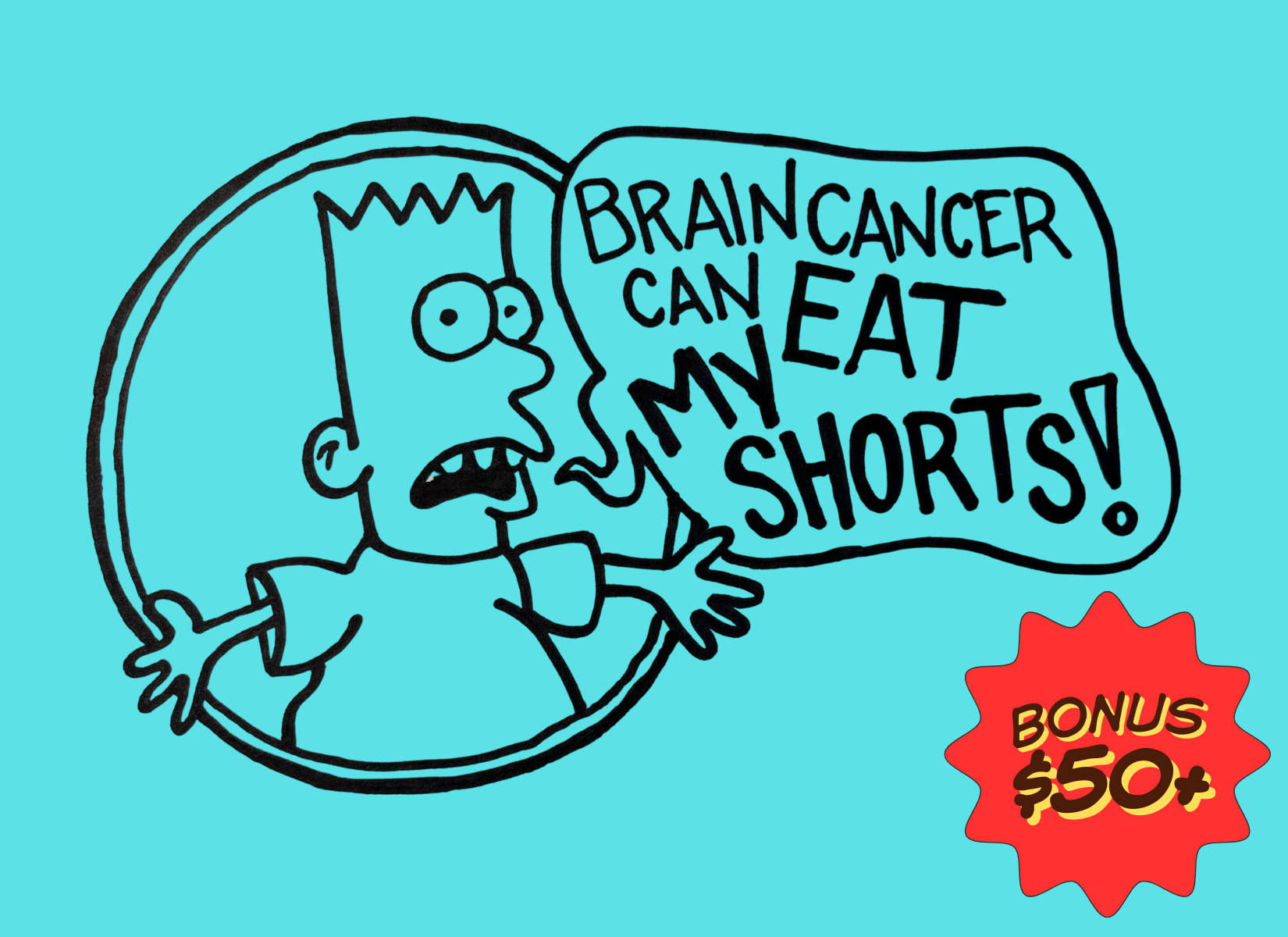 Inspired by the Bootleg Bart tee trend in the early-90s when people made their own unofficial, unauthorized Simpsons merch. A sample of some of the best Bartmania designs here.