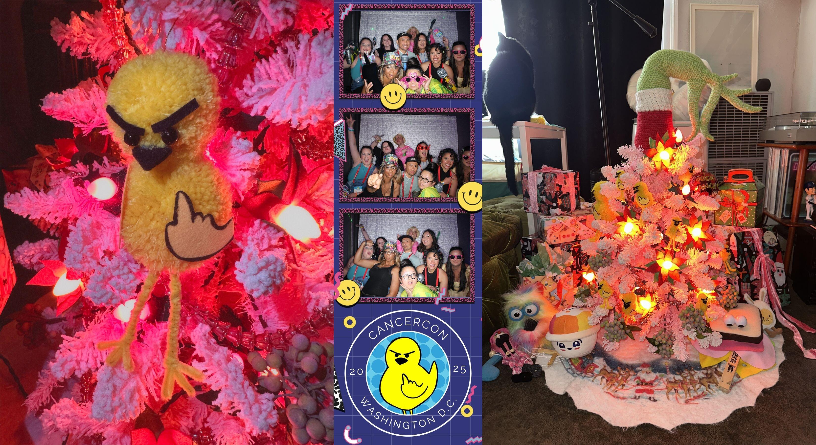 We rounded out our year of advocacy by dedicating our Christmas tree to Stupid Cancer. Olivia recently learned to crochet and decided to make a giant Grinch hand as a tree topper. The hand held an ornament that read “FUCK CANCER.” All around the tree hung pompom versions of Stupid Cancer’s mascot, Flip the Bird.