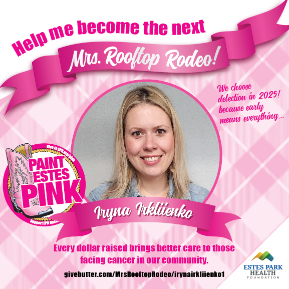 Iryna is honored to participate in the Mrs. Rooftop Rodeo competition to help raise funds for cancer screenings. Her heart for service and deep gratitude for community drive her to give back, and she invites you to join her in making lifesaving healthcare accessible to everyone in the Estes Valley.