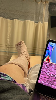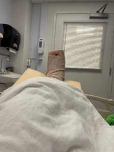 I sat in a shared room and after a couple of days I had my own room at the hospital. It was just me, the bed, a small table, a small toilet and TV, and my wrapped ankle and foot. I cannot tolerate pain meds so the most I could take was Tylenol. Yeah.