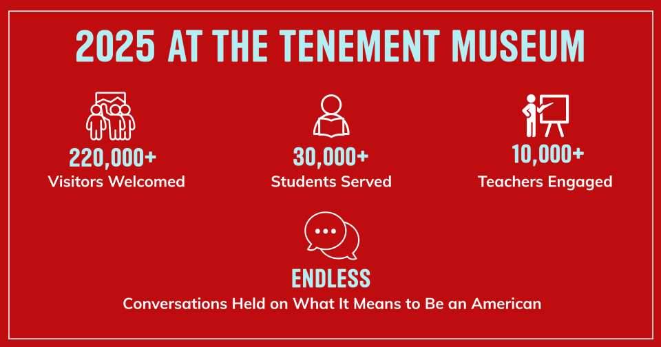 As the year draws to a close, please consider joining the President's Circle, the Museum's premier philanthropic group. By making a gift today, you enable us to remain steadfast in our efforts to showcase the history of ordinary families as extraordinary and inspire knowledge, empathy, and connection on the Lower East Side and beyond.