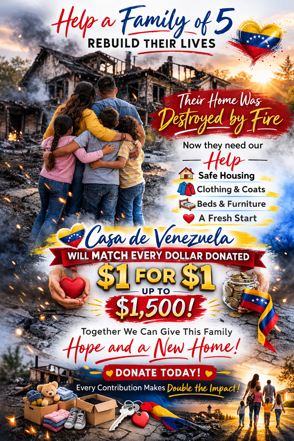 To amplify the community’s generosity, Casa de Venezuela will match every dollar donated — $1 for $1 — up to $1,500.