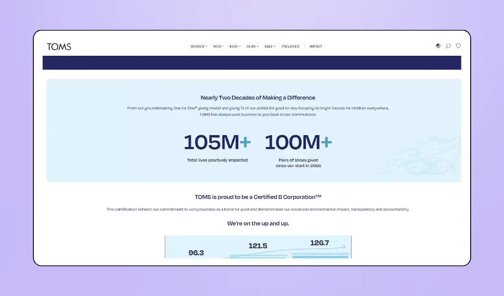 - Buy-one-give-one campaigns 👟 Works well for product-based companies with a clear, tangible impact tied to each purchase.