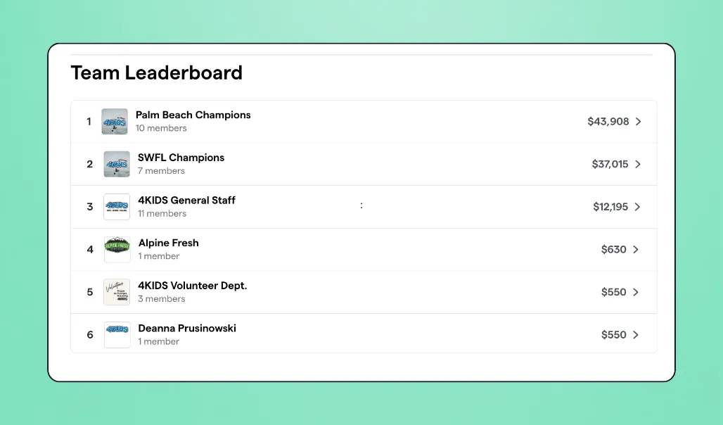 ⭐ Campaign highlight: Team fundraising. 11 different groups rallied enormous support from friends, family, and colleagues to see who would land at the top of the leaderboard.