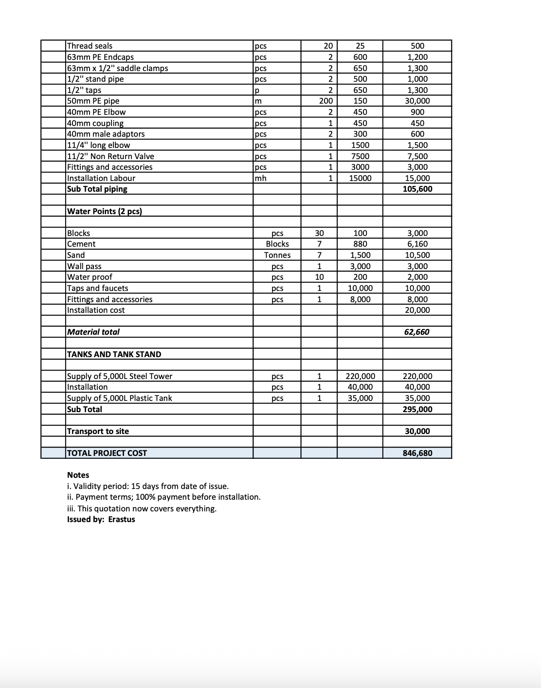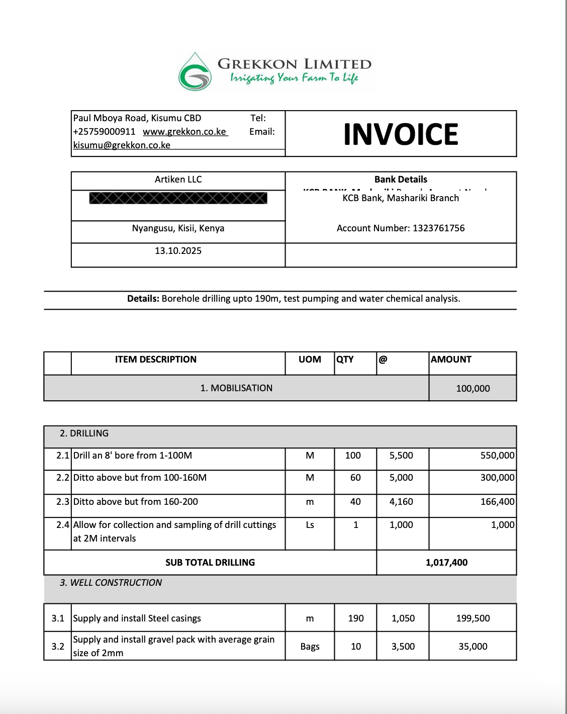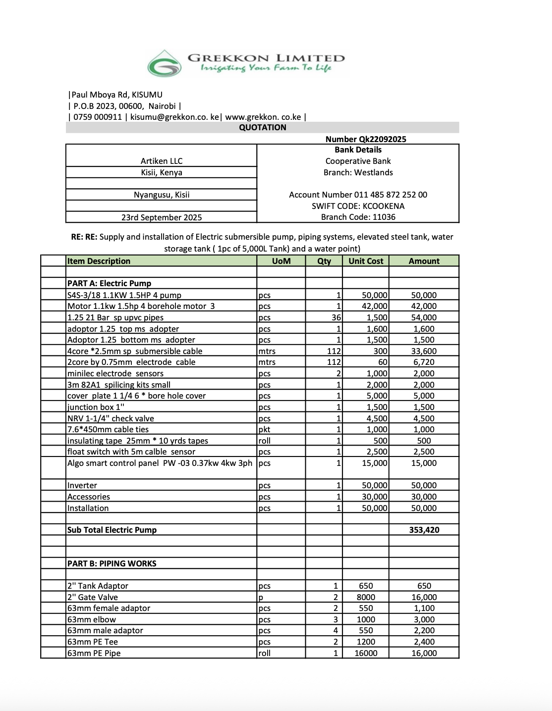 Please note the quote is in Kenyan Shilling [KES]