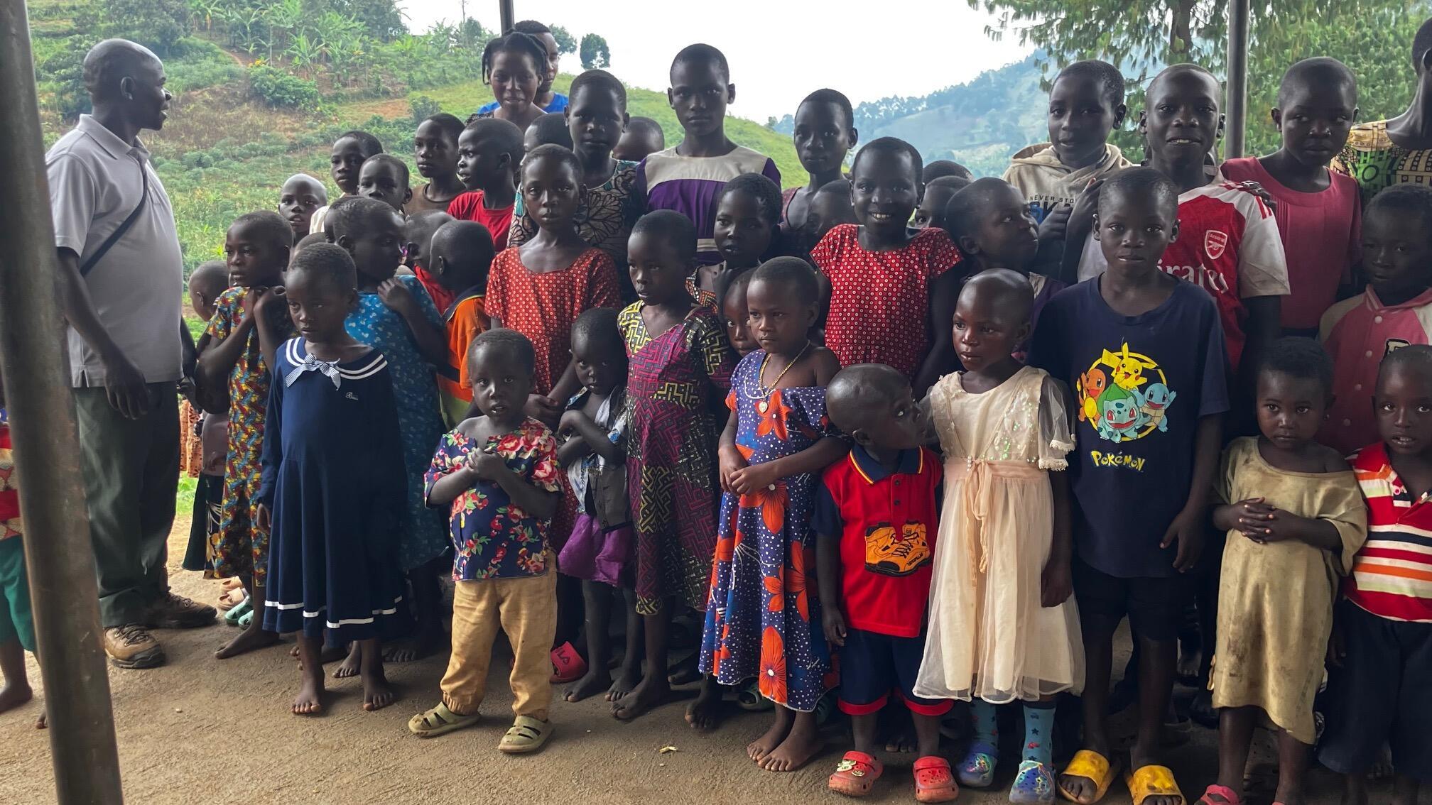 Mr. Caleb (founder and director; left side) with some of the school children.
