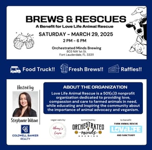 Join us at Orchestrated Minds in Fort Lauderdale for our BREWS & RESCUES Fundraising event to benefit Love Life Animal Rescue & Sanctuary!