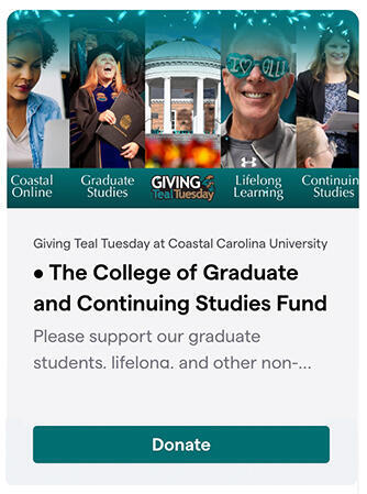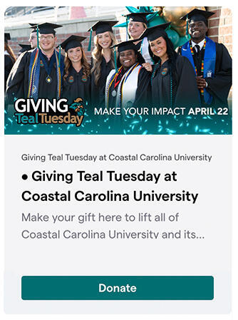 Coastal Carolina University’s Division of Advancement and Alumni Engagement is dedicated to fostering a lifelong connection between the University and its vibrant network of alumni, donors, and supporters. The division plays a key role in advancing CCU’s mission by cultivating meaningful relationships, securing philanthropic support, and creating opportunities to engage with the University. Through targeted fundraising campaigns, donor and alumni events, and strategic initiatives, the division helps to strengthen the University’s resources, ensuring continued excellence in academics, athletics, and student support services. The division is also committed to supporting the professional and personal growth of CCU graduates through alumni networking, mentorship, and career development programs. By facilitating opportunities for donors and alumni to contribute, whether through time, expertise, or financial support, the division helps to ensure that the legacy of Teal Nation thrives for generations to come.
