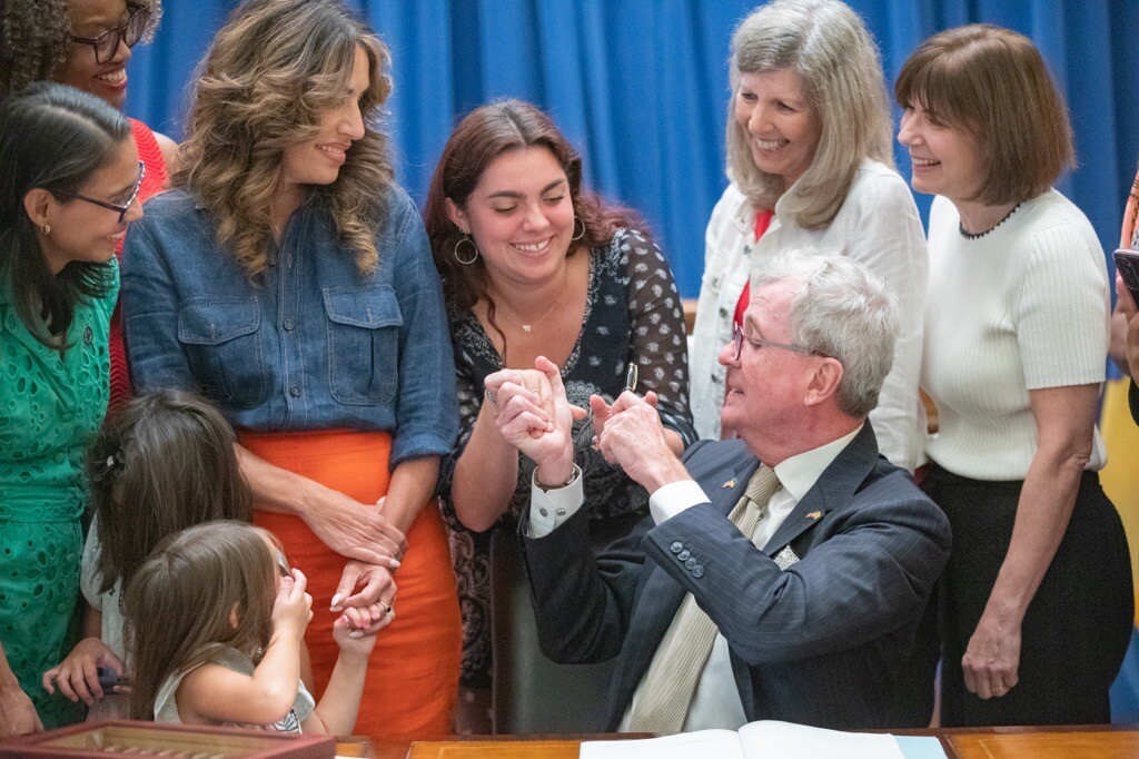 Now, our advocacy efforts include speaking to community leaders, business owners and lawmakers to create systemic change through policy and laws. In August, the governor of our state of New Jersey signed into a law a measure that will guarantee students will find free period products in their school bathrooms beginning next year. It is a law our mom, Elise, worked very hard to see enacted. (This is Emma shaking Gov. Murphy's hand as he signs the law and hands her the pen.)