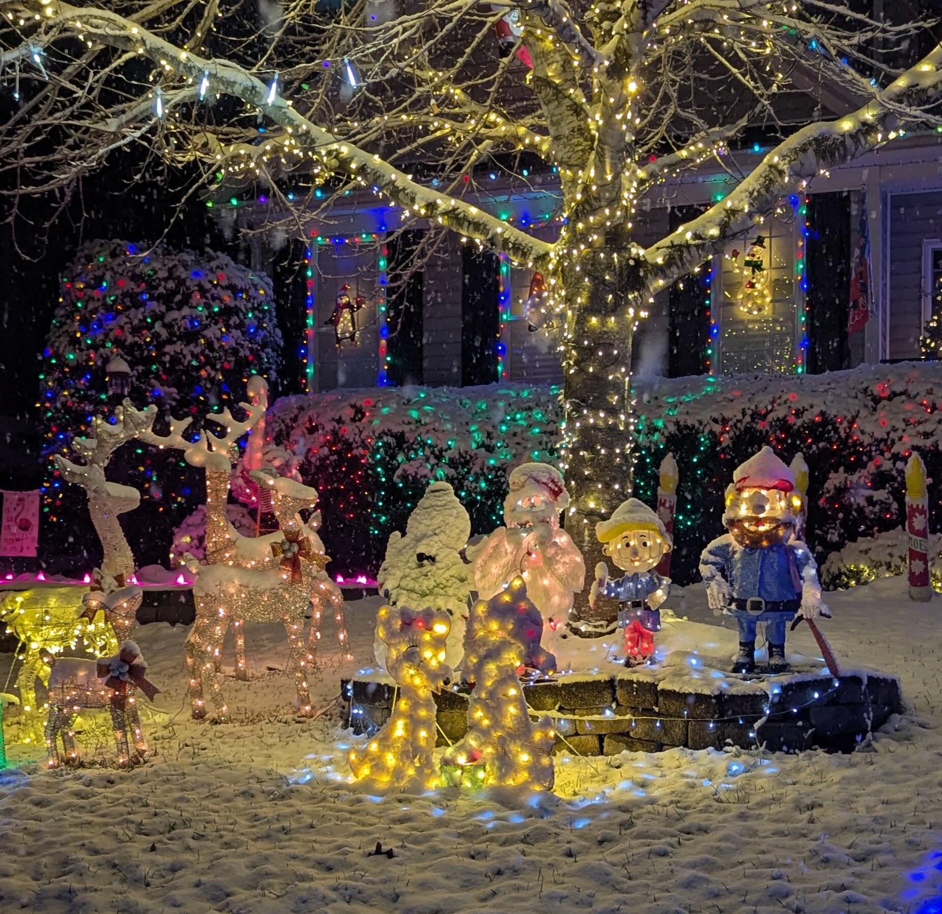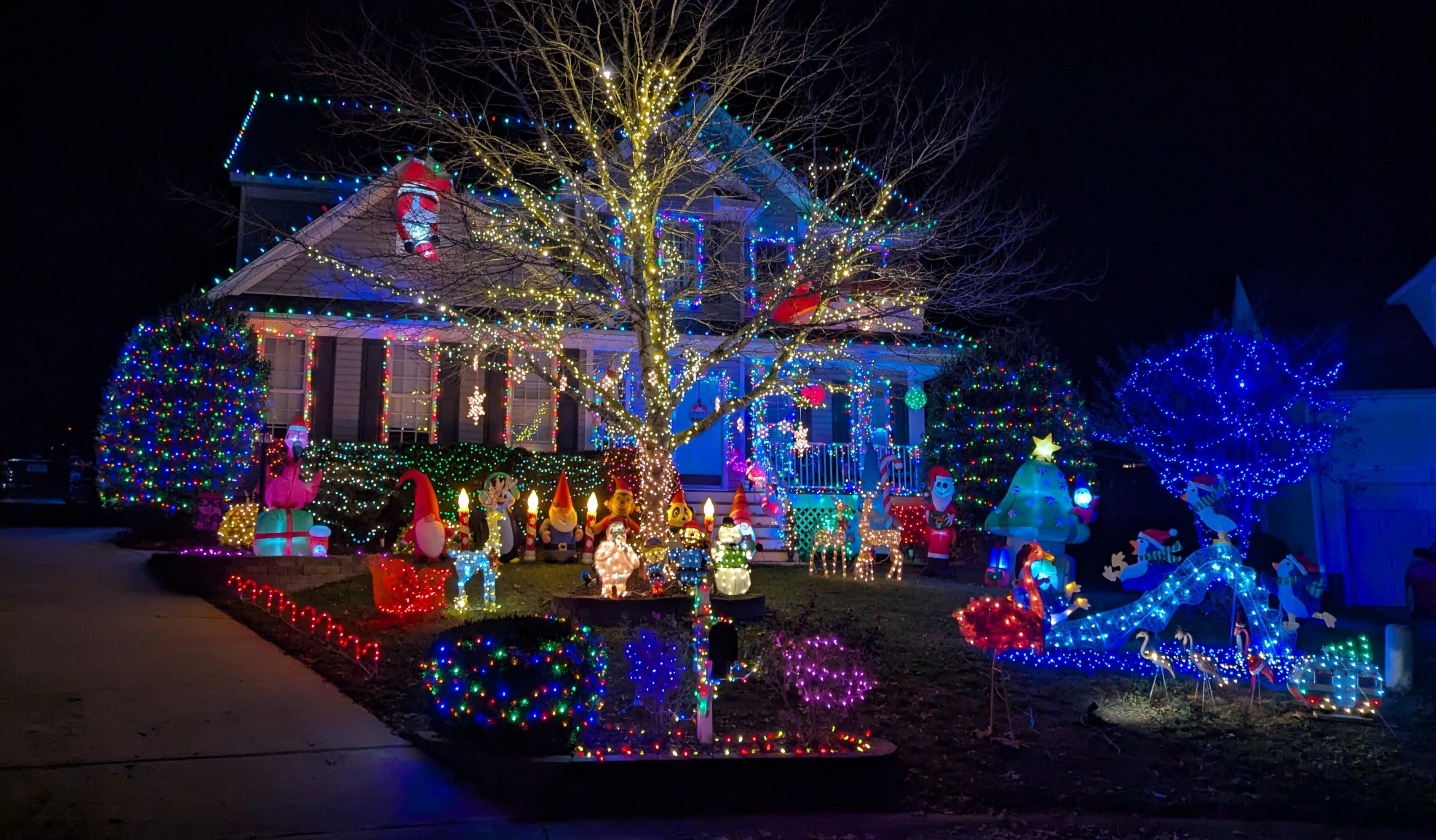at 13174 Hampton Meadows Terrace is more than a light display —it's a glowing tribute to our family's enduring love for Christmas light magic. What began as joyful outings with our children to admire neighborhood lights has blossomed into a dazzling tradition of our own. Each year, we've poured our hearts into transforming our home into a radiant wonderland, elevating the experience with whimsical charm and thousands of lights. Plenty of gnomes and flamingos decorate the yard along with other playful critters. We hope you enjoy it as much as we do.