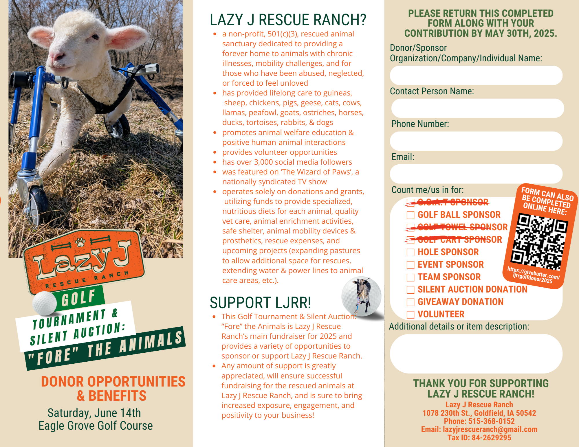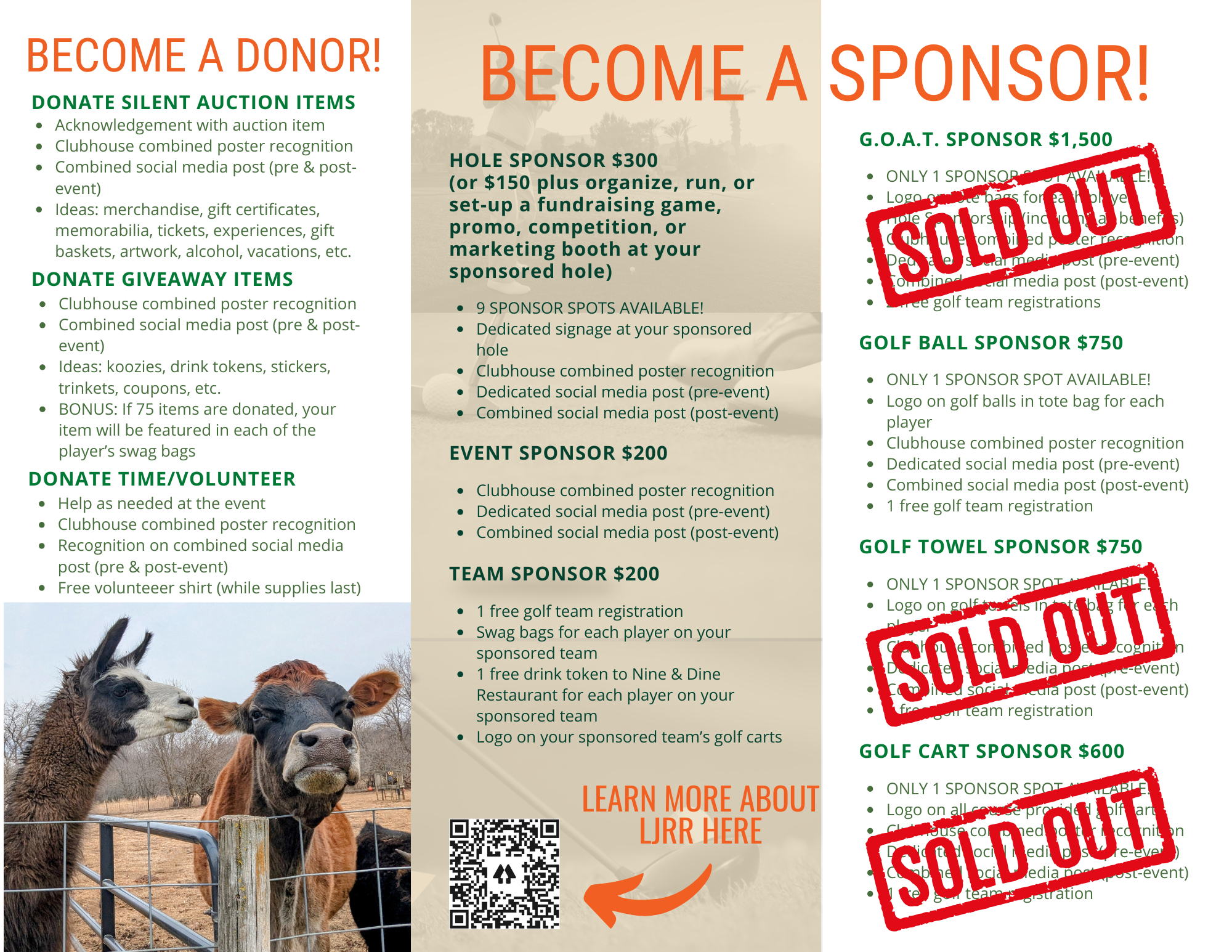 Donor Opportunities & Benefits for LJRR Golf Tournament & Silent Auction: "Fore" the Animals