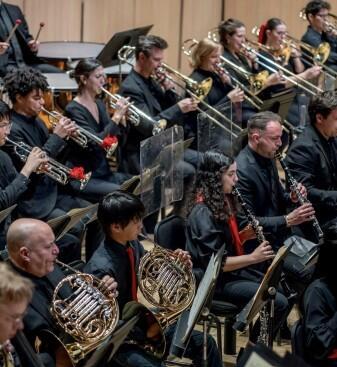 As you have seen above, our May concert features side-by-side performance, which involves young emerging musicians, in our case local high school string students, performing the same music shoulder to shoulder with seasoned professional players in the orchestra. This works to promote mentorship and community engagement. Students feel inspired being able to perform on stage with their mentors, networking, and creating lifelong relationships. Professionals get to experience the lively energy of young musicians along with the dynamic and spontaneous energy they bring to a concert.