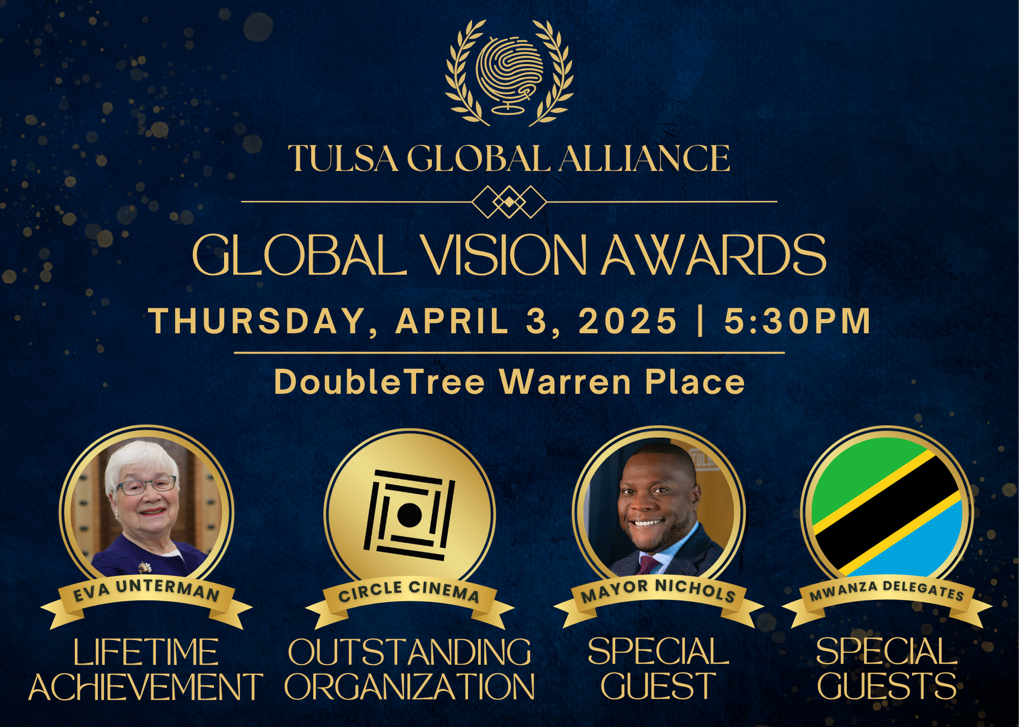 Join us for an evening with our global community as we celebrate Eva Unterman, Circle Cinema, and the work of Tulsa Global Alliance. We're thrilled to be joined by special guests, Mayor Monroe Nichols IV and delegates from our new Sister City, Mwanza, Tanzania! ๐บ๐ธ๐ค๐น๐ฟ