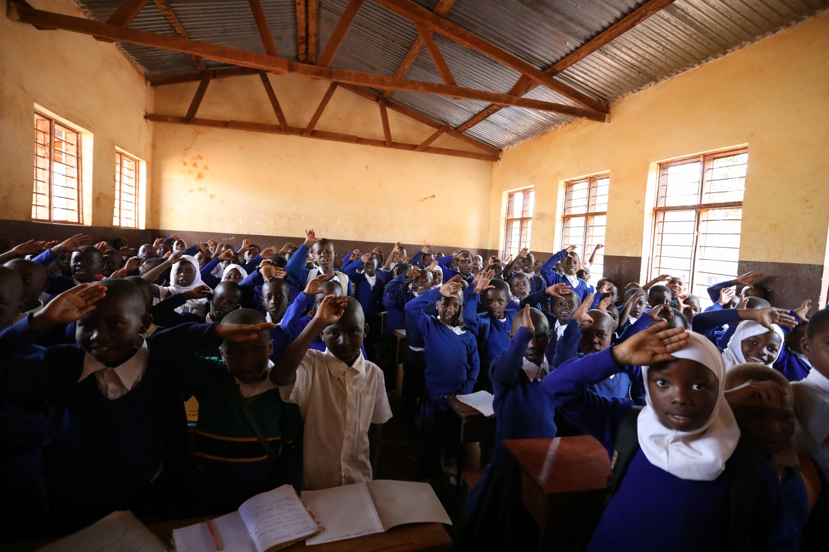 Above: nearly 200 children in one primary classroom in Songea