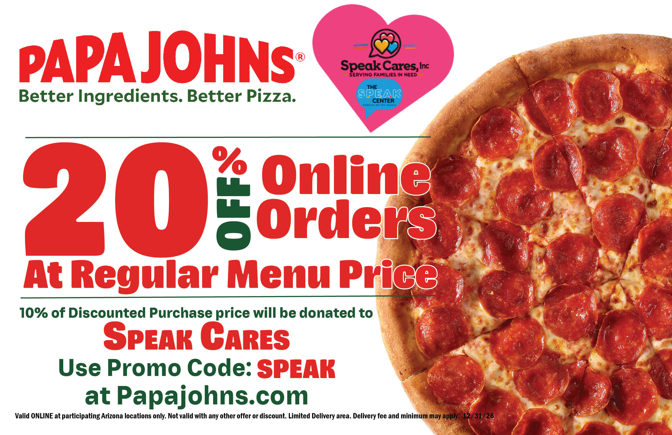 🍕Help us all year long by ordering Papa Johns online using promo code: SPEAK
