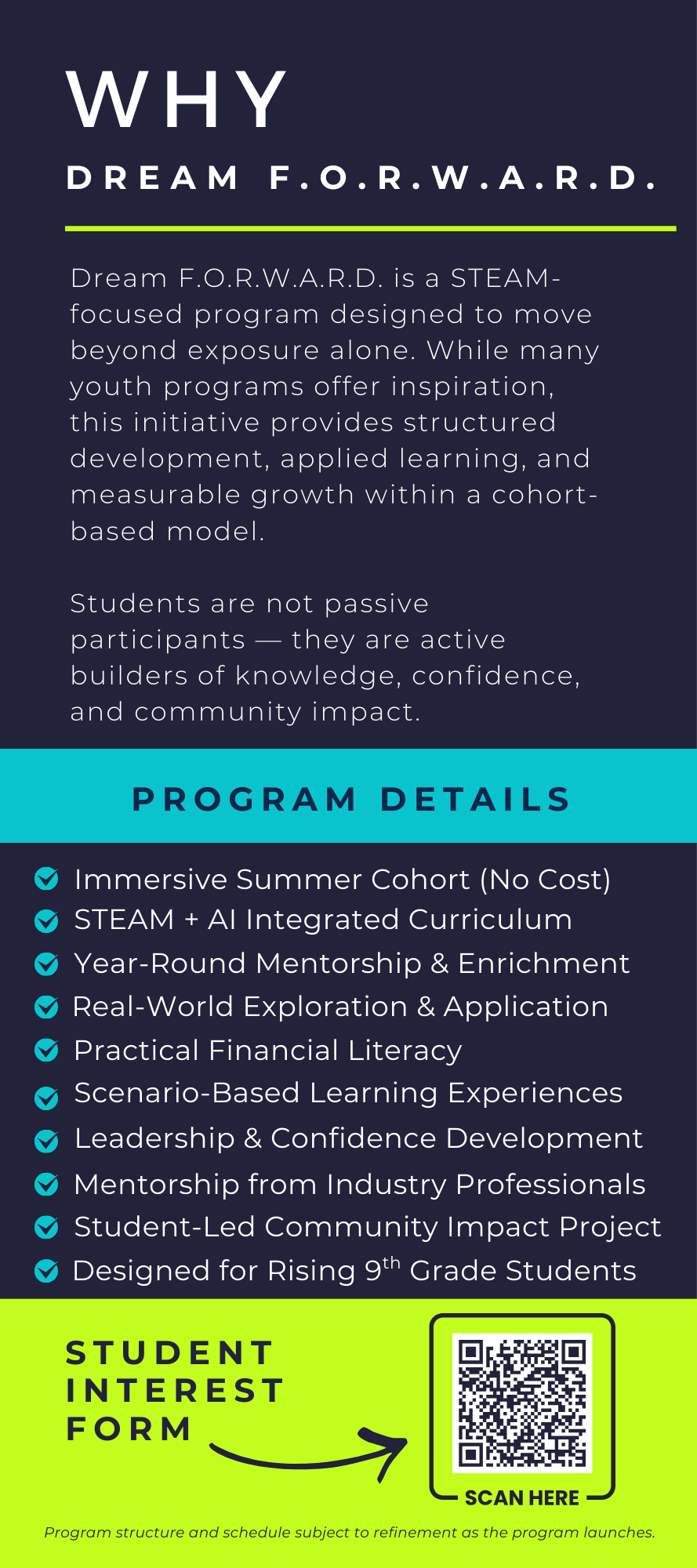 Your support helps launch our inaugural program, Dream F.O.R.W.A.R.D., a STEAM-centered youth initiative, while establishing a strong foundation for the organization’s long-term growth. As Embouldin To Dream evolves, our programming and reach will continue to expand to meet emerging community needs.