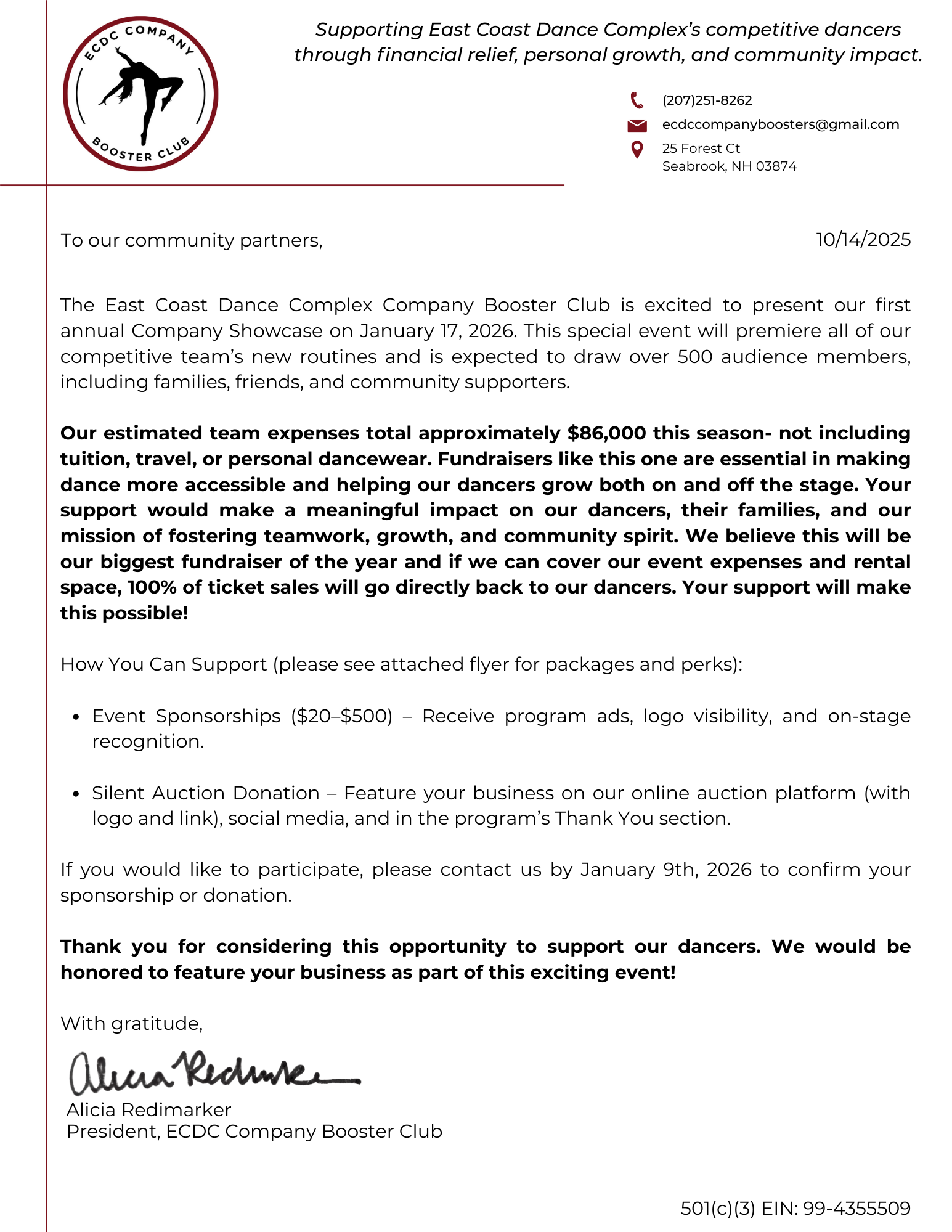 Organized by ECDC Company Booster Club